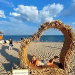 O apartamento Апартамент Vip Комплекс Artur Apartamento à beira-mar de 65 m^2 está localizando na praia, a 25 minutos de distância do Marina de Dinevi. Este apartamento à beira-mar inclui cozinha totalmente equipada equipada com microondas, chaleira elétrica e um frigorífico.